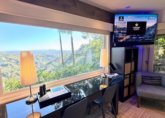 Located within a 10-minute drive of The Magic Castle, the 1-room Hollywood Hills Jetliner Views At Studio 1080 Hollywood Apartment is within a 10-minute drive of a top family-friendly place like Revenge of the Mummy Roller Coaster. Guests will enjoy having Wi-Fi, and those with cars will appreciate parking nearby.